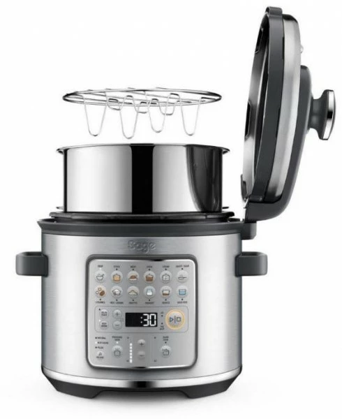 Mit 14 Schnellauswahltasten und Geräteeinstellungen auf Knopfdruck. Dazu gehören: Suppe, Fond, Fleisch, Eintopf, Dampfgaren, Sautieren, Hülsenfrüchte, Reis/Getreide, Risotto, Joghurt, Reduzieren und Sous-Vide.