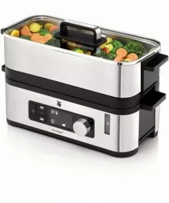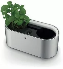 Rücken Sie Kräuter und Zimmerpflanzen ins rechte Licht: Der WMF Indoor-Kräutergarten hat Platz für zwei Pflanzen und glänzt nicht nur mit seiner edlen Cromargan®-Oberfläche, sondern auch mit einer edlen LED-Beleuchtung. Der Clou: Einfach das Edelstahlgehäuse berühren und dank Easy Touch Technologie ein einzigartiges Licht-Ambiente in drei Helligkeitsstufen zaubern. Das intelligente Bewässerungssystem hält Kräuter lange frisch – so kann man das Gießen ruhig für ein paar Tage vergessen.