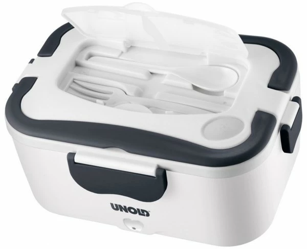Leckereien rein, Strom an und fertig ist das Mittagessen! Für alle, die keine Mikrowelle im Büro haben oder viel unterwegs sind, ist die elektrische UNOLD® Lunchbox eine hervorragende Lösung. Löffel und Gabel im Deckel und die herausnehmbare Dose mit Deckel für Beilagen oder Nachtisch machen die Lunchbox zum kleinen Genuss-Wunder. In der UNOLD® Lunchbox mit einem Volumen von ca. 1,5 Liter lassen sich Speisen bis maximal ca. 70 °C erwärmen. Lunchboxdeckel, Besteck, Dose mit Deckel und der herausnehmbare Edelstahlbehälter sind spülmaschinengeeignet.